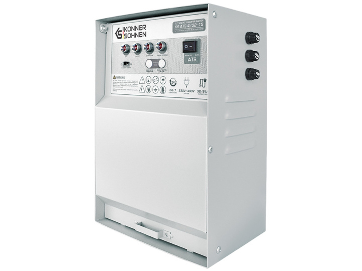 Модель блоку АВР KS ATS 4/32-15 підходить для бензинових генераторів «Könner&Söhnen» KS 15-1E ATSR та KS 15-1E 1/3 ATSR.