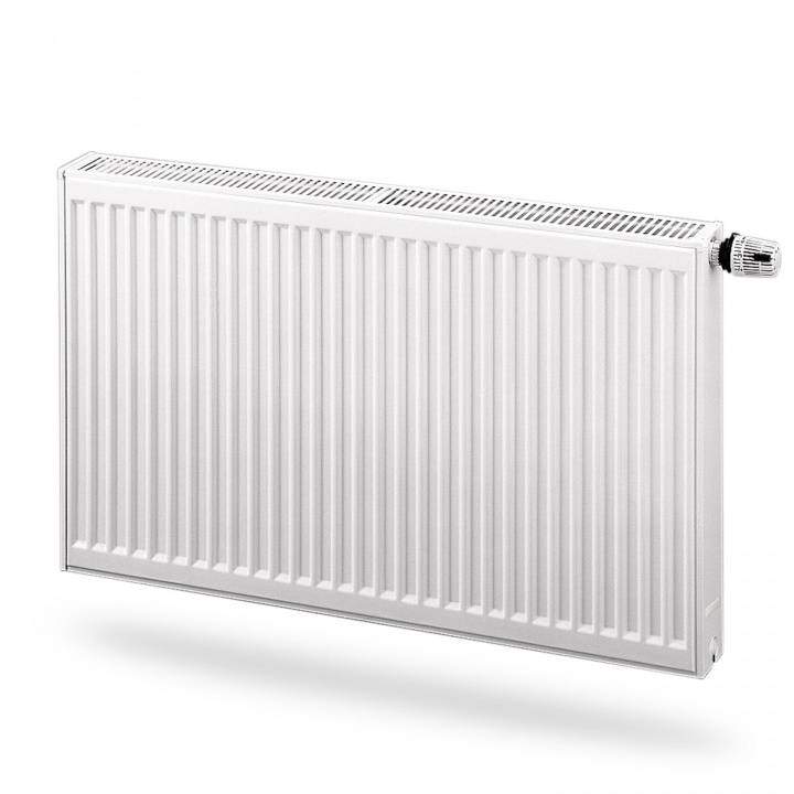 Панельні радіатори з конвекційними елементами та вмонтованим вкладишем термостатичного крана, бічні поверхні закриті захисними елементами, верхня поверхня закрита планкою типу гриль. Вмонтований приєднувальний комплект дозволяє підключити радіатор як знизу, так і збоку. Два нижні під'єднувальні отвори для підключення на рівні підлоги, а також чотири бічні під'єднувальні отвори в кожному куті радіатора. Всі отвори мають внутрішнє різьблення G1/2. Радіатор має вкладку термостатичного крана Heimeier або Oventrop з попереднім регулюванням. У радіаторах CV22 та CV33 підключення може бути праворуч, а також ліворуч, якщо радіатор повернути. Подача труби завжди розташована ближче до центру радіатора, а зворотна труба - ближче до краю радіатора.