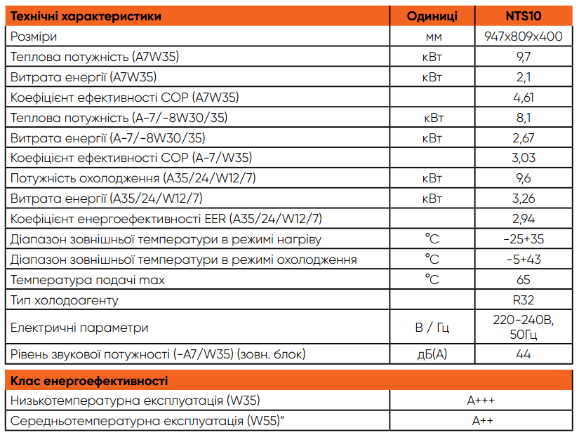Спліт-система теплонасосу складається з двох частин: внутрішнього блоку та зовнішнього блоку, які з’єднуються між собою мідними трубами, а по ним іде фреон R32. Внутрішній блок – це внутрішня частина повітряного теплового насоса який використовується для нагрівання або охолодження шляхом передачі тепла у теплообміннику. Внутрішній блок може бути з’єднаний з фанкойлом, опаленням, теплою підлогою, низькотемпературним радіатором та побутовим резервуаром з гарячою водою. Система обладнана додатковим нагрівачем для сприяння нагрівання при низькій температурі. В основі роботи теплового насоса лежить зворотний термодинамічний цикл Карно. Ключовий компонент циклу - робоча рідина (холодоагент), що має особливі термодинамічні властивості.