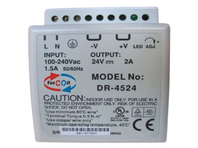 Перетворюючий трансформатор з 220v на 24v, з вбудованою платою плавного регулювання швидкості обертання вентиляторів.