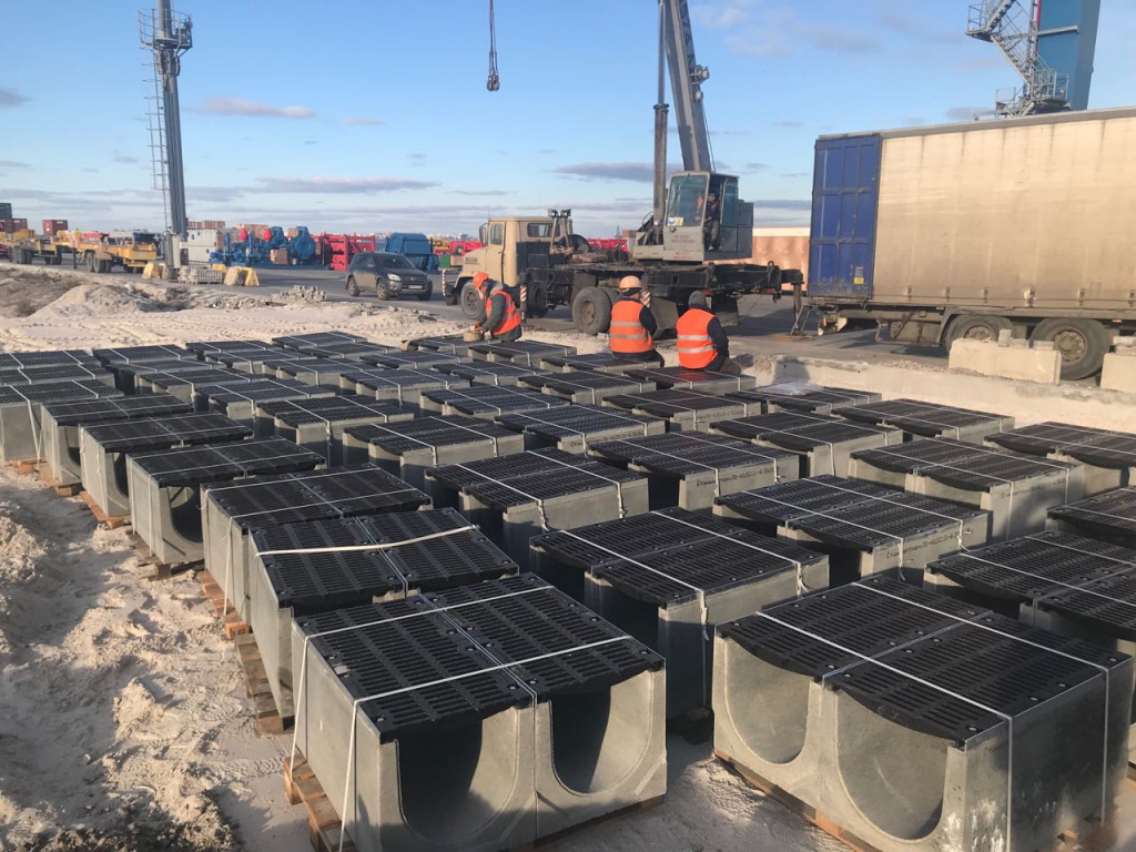 Лотки для каналів виготовлені з бетону, решітки з високоміцного чавуну з антикорозійним покриттям.